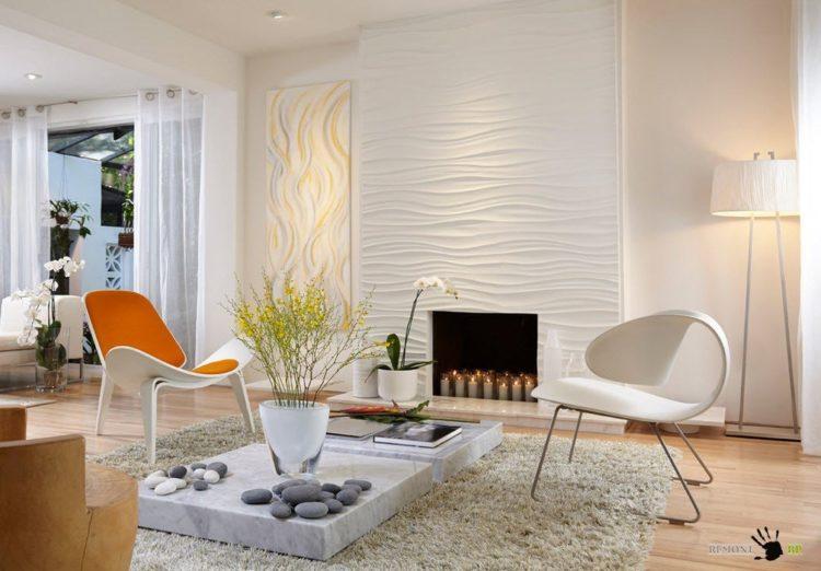 Después de considerar las soluciones de color propuestas para el diseño de la sala de estar con chimenea, puede elegir una de ellas. Una amplia gama de chimeneas modernas lo ayudará a elegir el modelo correcto. Puede elegir una opción que realice solo funciones decorativas, o instalar una chimenea real, por ejemplo, en biocombustible o su análogo eléctrico, que lo calentará y le brindará comodidad en las noches frías.