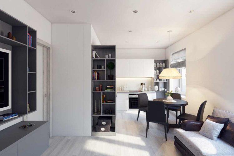 Si crees que tienes un departamento antiguo, Jruschov es otra opción incluso donde. ¡Solo necesita agregar un poco de elegancia negra!
