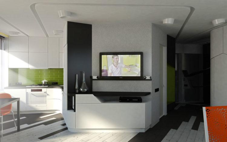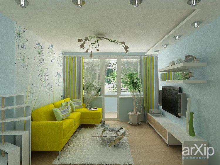 El interior de Jruschov en colores brillantes le permitirá exprimir al máximo el espacio disponible, al menos visualmente.