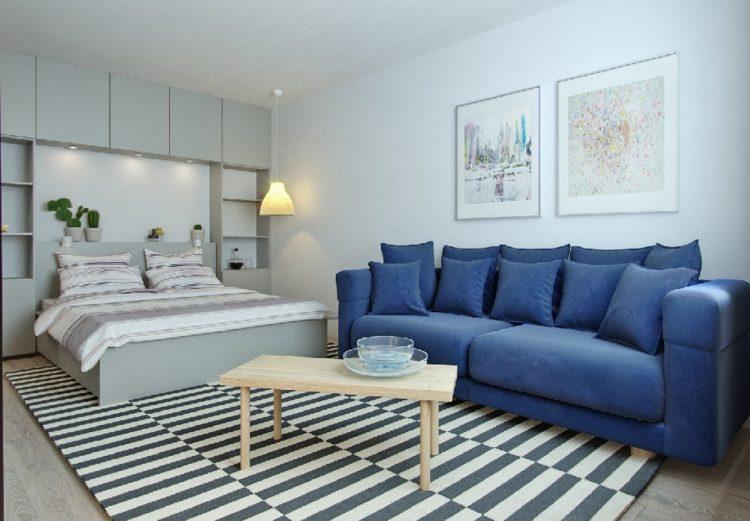 Pensando en la reparación perfecta de Jruschov, las fotos de muebles azules y objetos de arte serán muy útiles para usted.