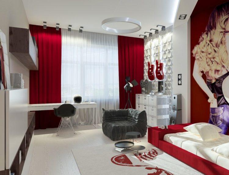 Por extraño que parezca, el diseño de la habitación de un adolescente en diseño rojo es una elección bastante frecuente y común. No es ningún secreto que a los adolescentes les gustan los colores brillantes e incluso ácidos.