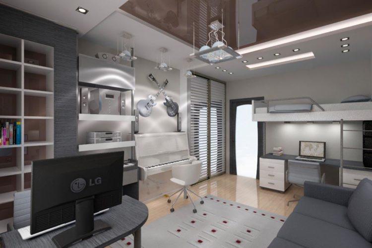 - Diseño de sala gris para un niño adolescente
