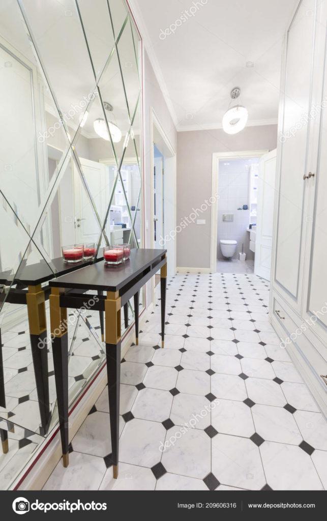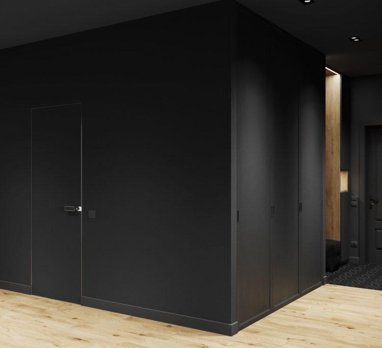 El color negro en el pasillo no es muy común.Si tiene un pasillo pequeño, use marcos negros, un banco tallado o un florero en el piso.