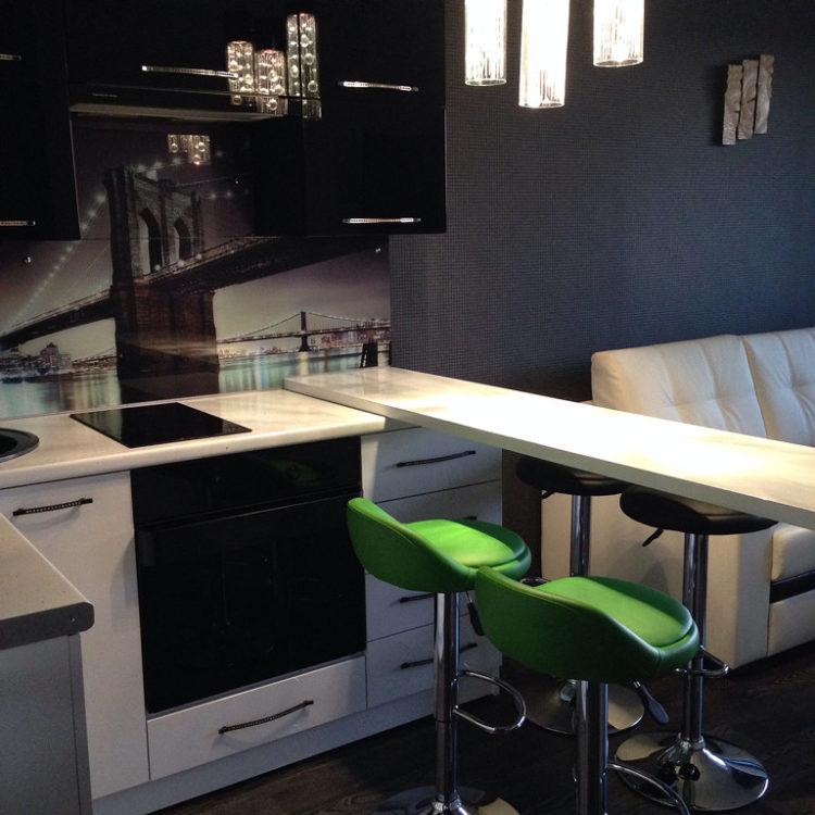 Eche un vistazo a la foto y definitivamente encontrará algunas ideas para su reparación. Hoy no es necesario detenerse en los colores básicos. Como puede ver en la selección, el uso de colores brillantes no estándar también le permite obtener una imagen armoniosa y elegante del espacio de la sala de estar de la cocina.