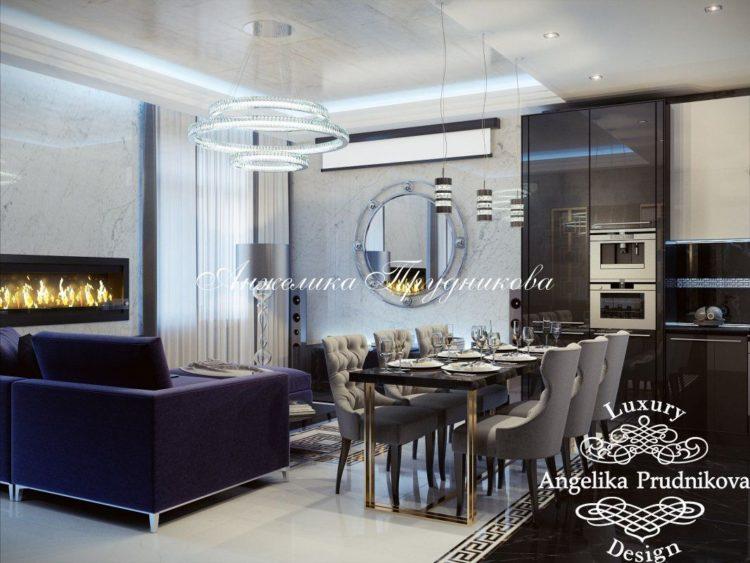 La sala de estar con cocina se combina no solo en pequeños apartamentos. El interior de la cocina de la sala de estar en una casa privada, creada correctamente, lo ayudará a usted y a sus invitados a sentirse cómodos. El diseño moderno de la cocina no tiene que ser solo blanco o beige. La selección de hoy de cómo se combinan la cocina y la sala de estar: diseño fotográfico en los tonos más inesperados.