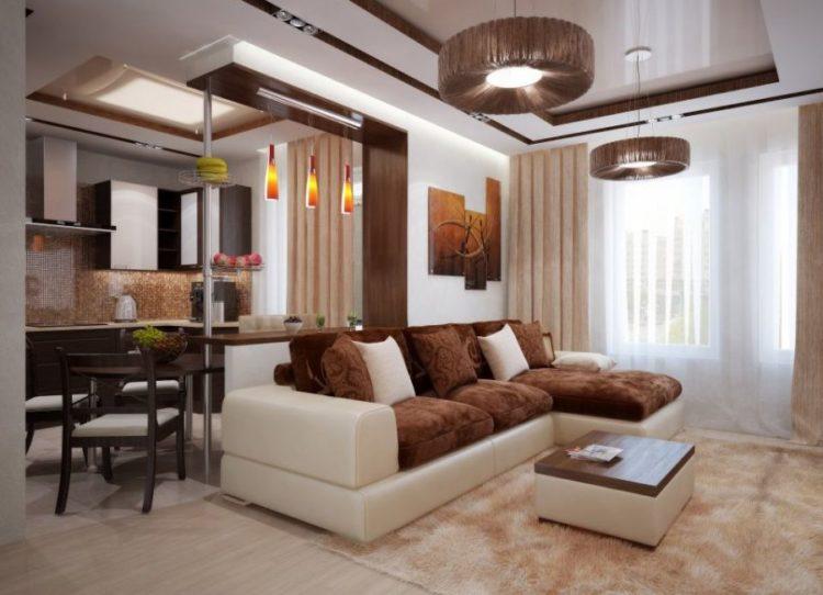 Si no obtuviste un apartamento ordinario, sino un estudio, entonces definitivamente debes pensar en zonificar la cocina y la sala de estar. Además, el interior de la sala de estar, combinado con la cocina, puede ser el más diverso. Vea usted mismo cuán hermoso puede ser el diseño de una cocina combinada con una sala de estar: las fotos en diferentes colores lo ayudarán a decidir su propia opción.
