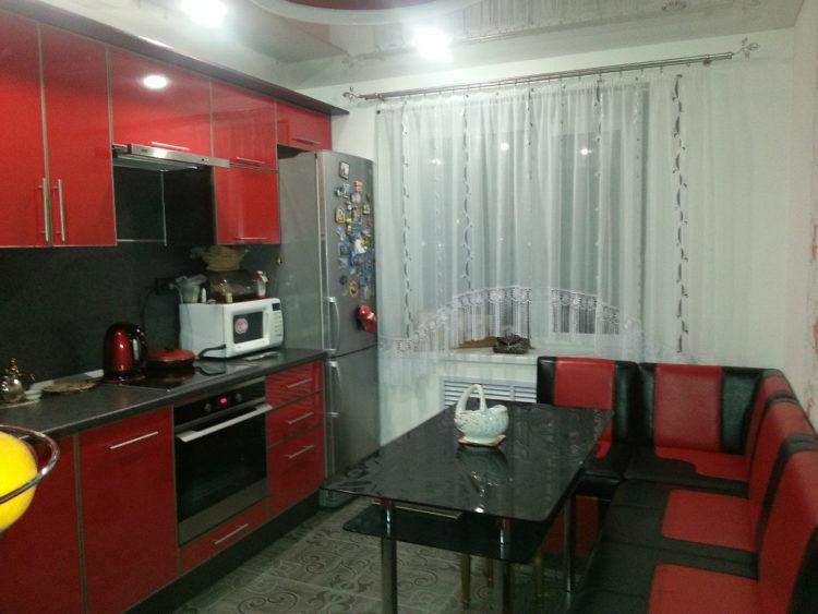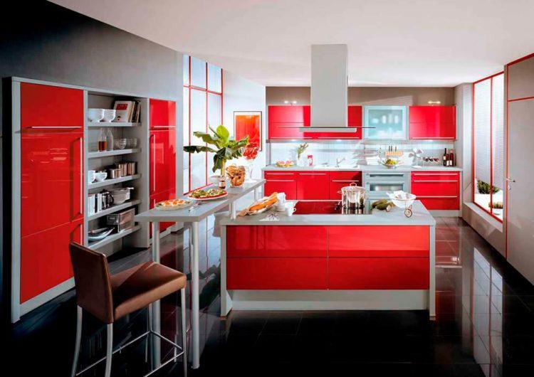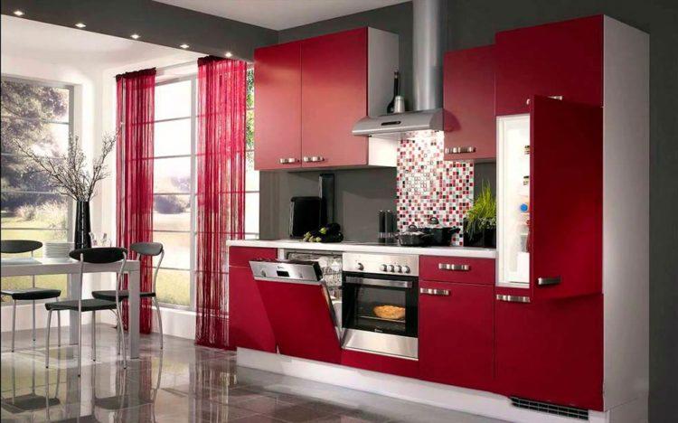 Por supuesto, no vale la pena hacer que el interior de la cocina de la sala de estar combinada sea completamente rojo. Esto puede ser demasiado agotador para las actividades diarias. Pero los elementos rojos básicos agregarán un toque de impulso a la vida cotidiana.