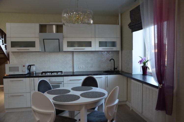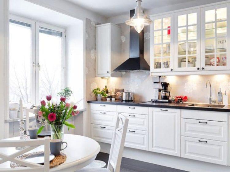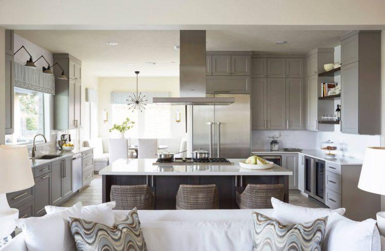 El diseño en colores grises ha dejado de considerarse aburrido. El tono ceniza plateado es discreto, nunca aburrido. Y si desea variedad, los platos brillantes, las flores o un mantel cambiarán instantáneamente el aspecto de la cocina.