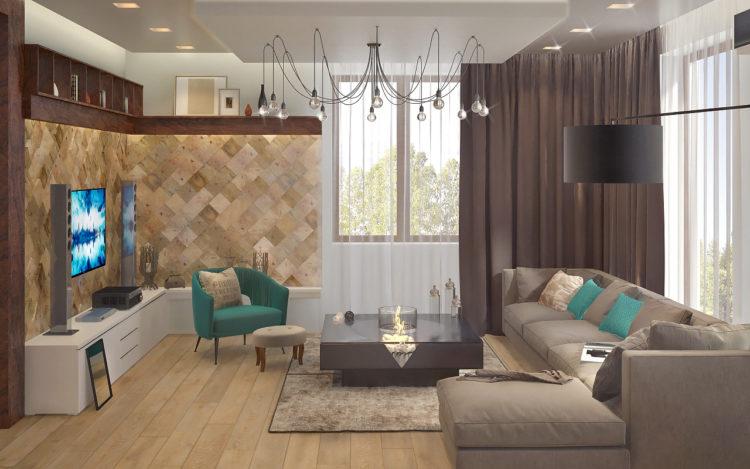 - Diseño de una sala de estar combinada con una cocina: ideas coloridas