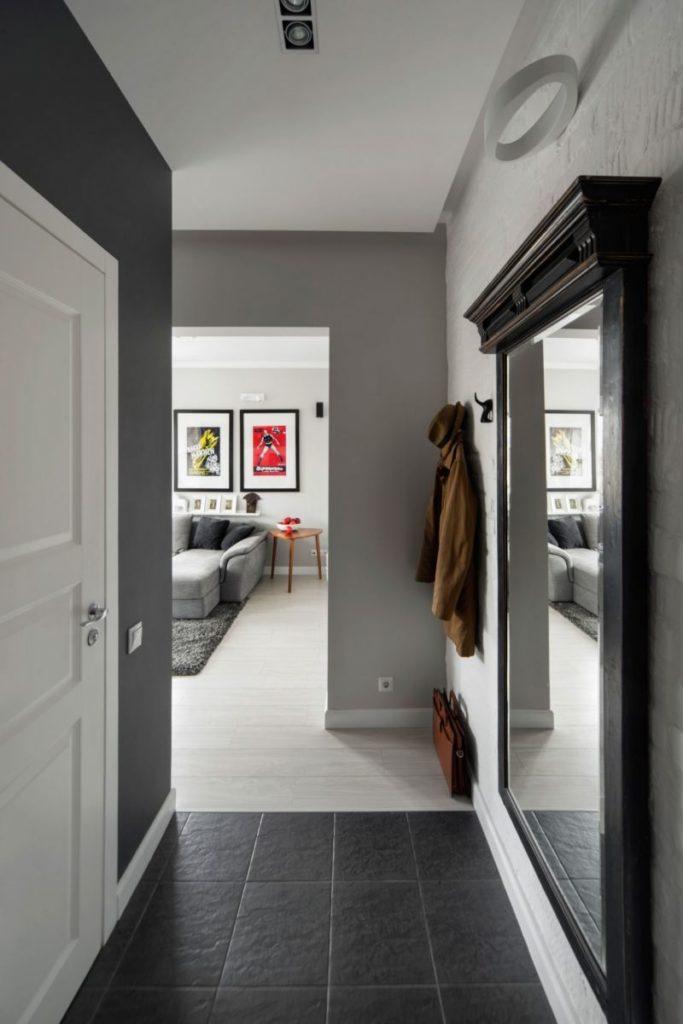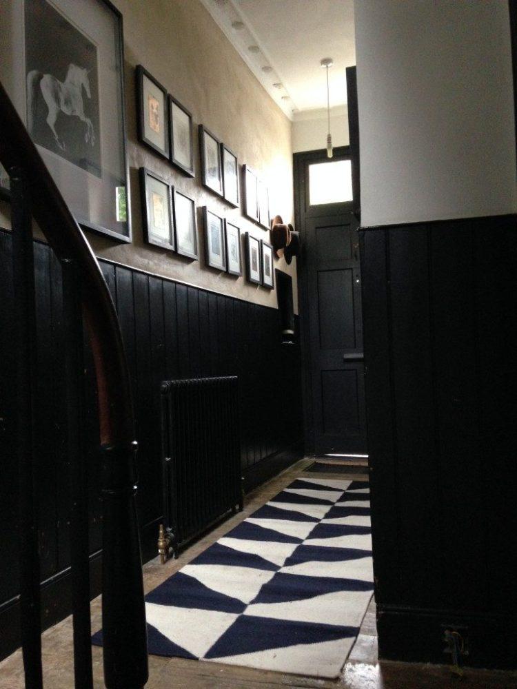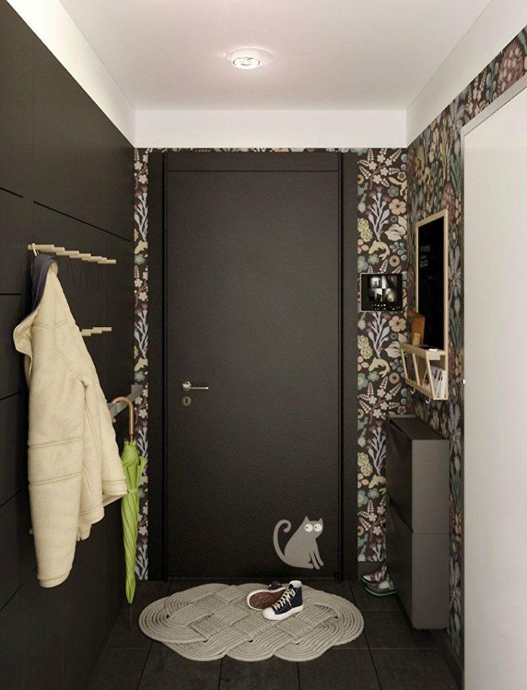 El diseño del pequeño hall de entrada en colores oscuros da novedad, frescura e inusual.