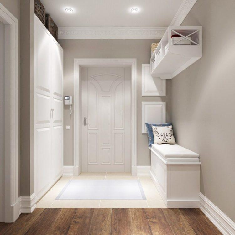 Si está buscando soluciones elegantes para pasillos pequeños, las fotos de pasillos estrechos en el apartamento indican que el blanco será la mejor opción y expandirá visualmente el espacio.
