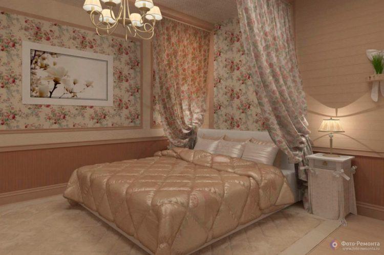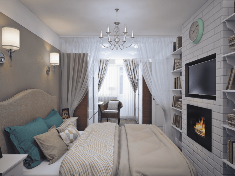 Atrae con la atmósfera de simplicidad, paz y naturalidad inherente a la provincia del pueblo. El interior de la habitación (foto a continuación) en el estilo de la Provenza francesa se caracteriza por una abundancia de tonos naturales claros y cálidos. Utilice la decoración de paredes con estuco, materiales naturales con una textura natural, como la caoba. Elementos de decoración forjados, estampados florales, figuras de porcelana y cerámica, costura y volantes en colchas combinan armoniosamente con estilo. El diseño de la pequeña habitación está hecho en blanco, arena, beige, crema, amarillo apagado, azul claro, verde pálido, colores lavanda.