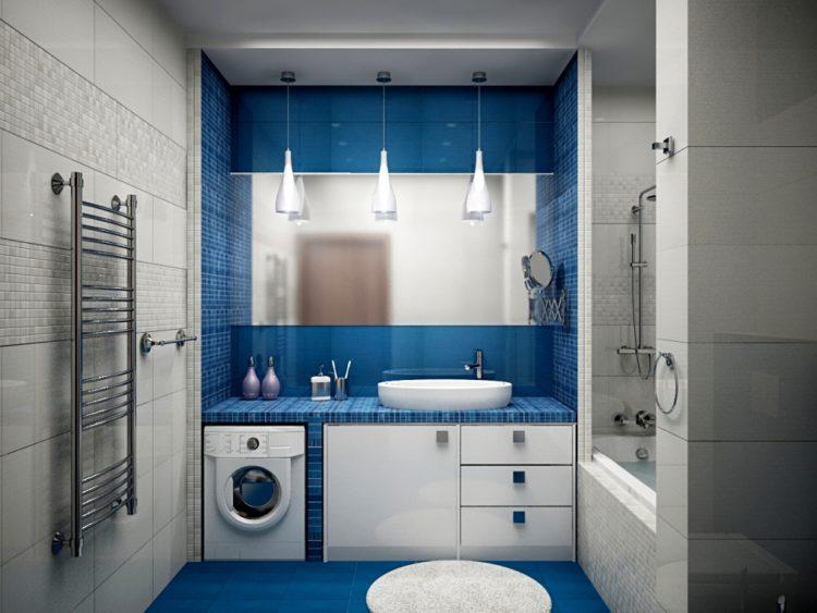 El uso de varios tonos le permite lograr el efecto deseado de un aumento visual en el espacio. Este método es bueno para un diseño de baño económico, puede considerar fotos de posibles opciones de diseño en la siguiente selección.