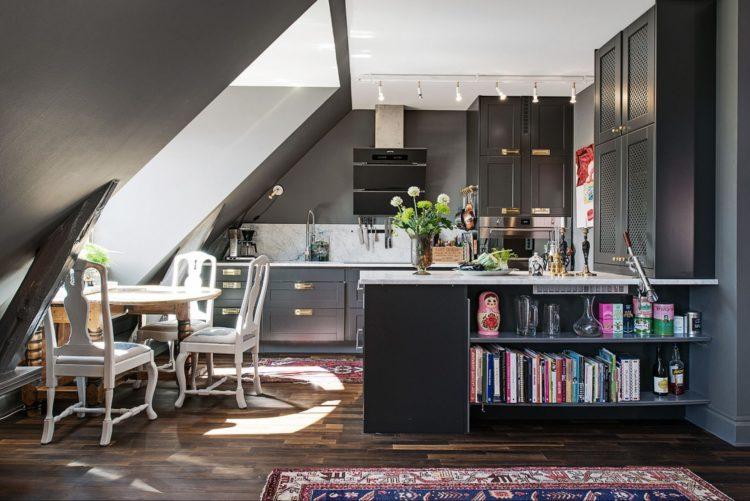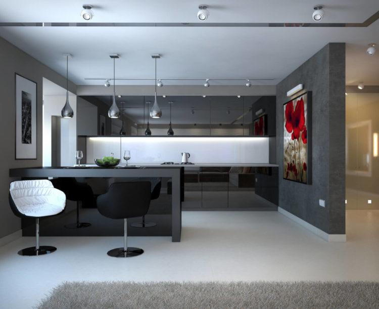 Con una combinación competente, los diseños de apartamentos con tonos oscuros pueden lucir armoniosos.