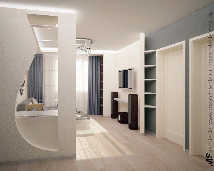 En odnushka de cualquier diseño, la zonificación juega un papel muy importante, que puede garantizar la privacidad de todos los miembros de la familia. Muy a menudo, los proyectos estándar son reemplazados por un apartamento tipo estudio. El estudio siempre se puede amueblar adecuadamente de acuerdo con las necesidades de su familia. Incluso en una habitación muy pequeña, es posible colocar un lugar cómodo para dormir, un rincón para sentarse y un pequeño parque infantil para niños.