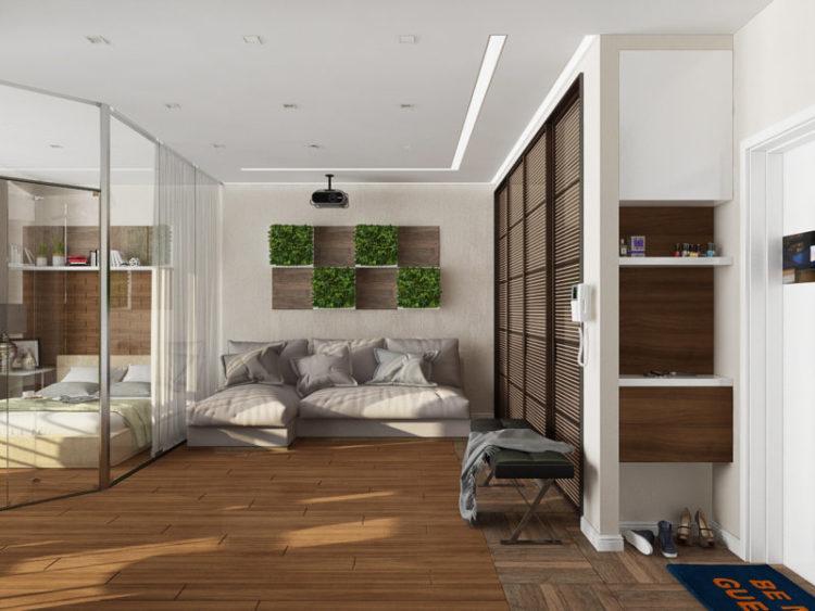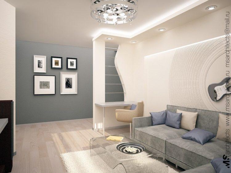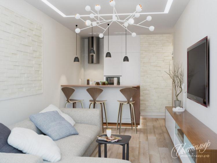 Las ideas para el esquema de color y cómo organizar los muebles en un apartamento de una habitación se pueden ver en la foto.