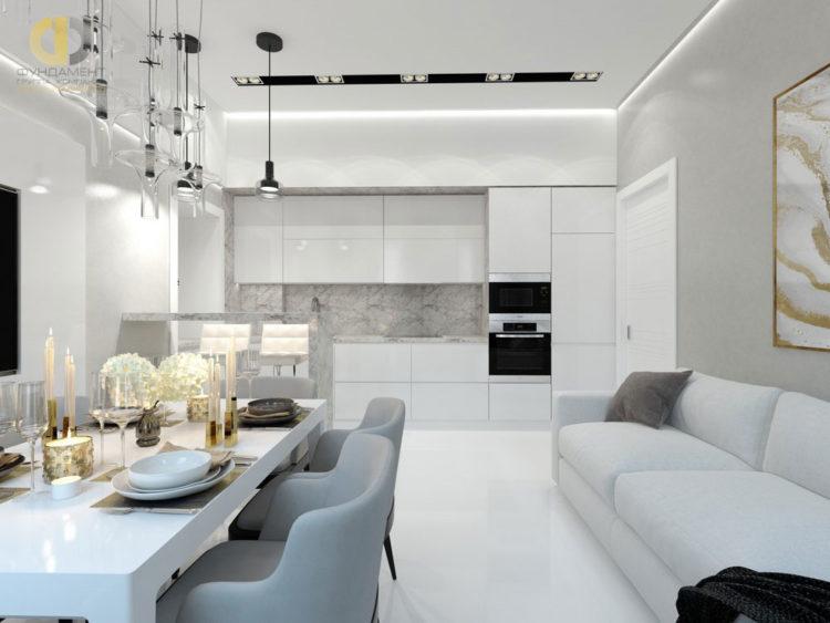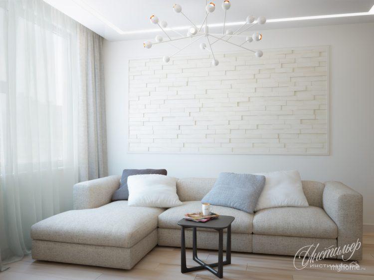 Odnushki con un interior blanco se ve mágico en un interior brillante y moderno.