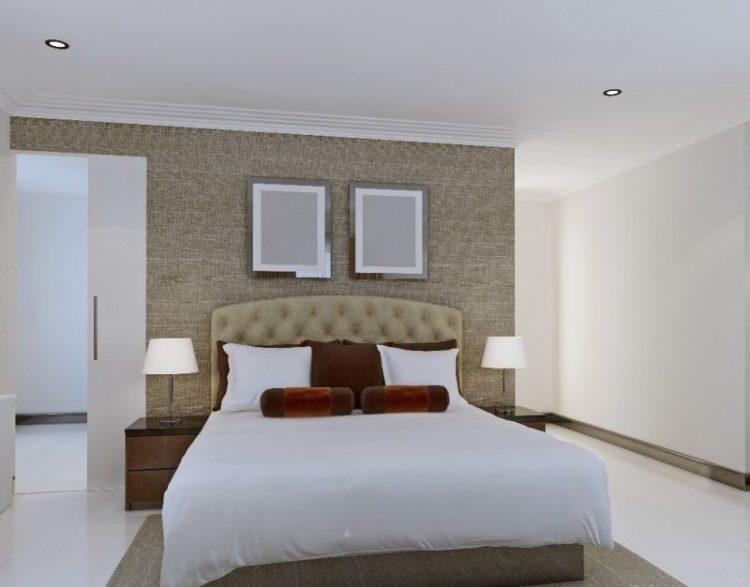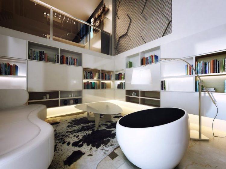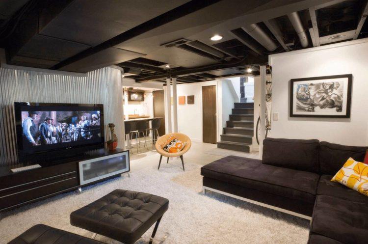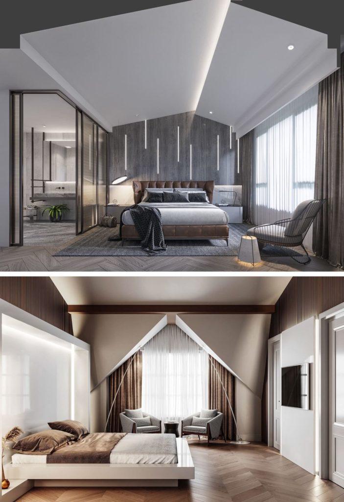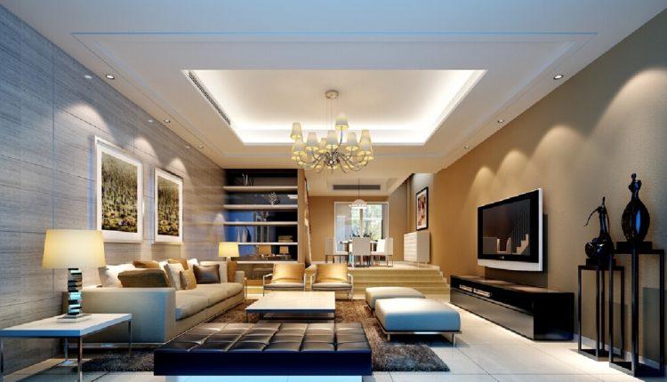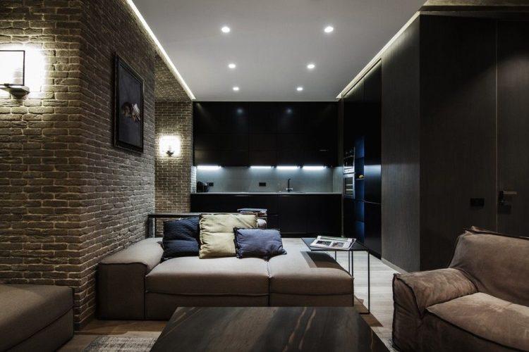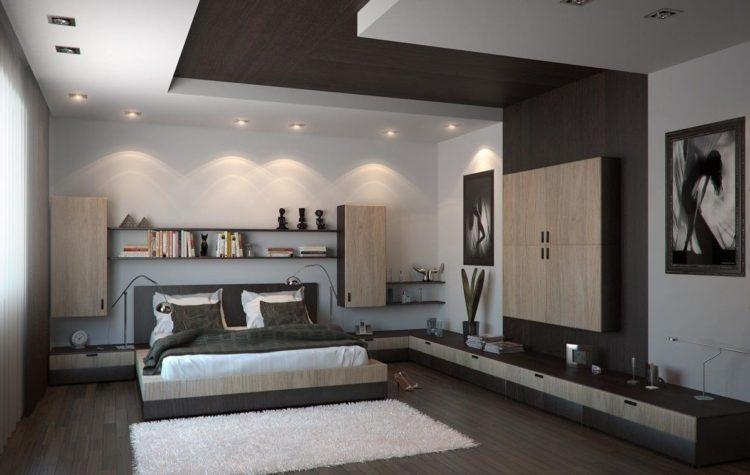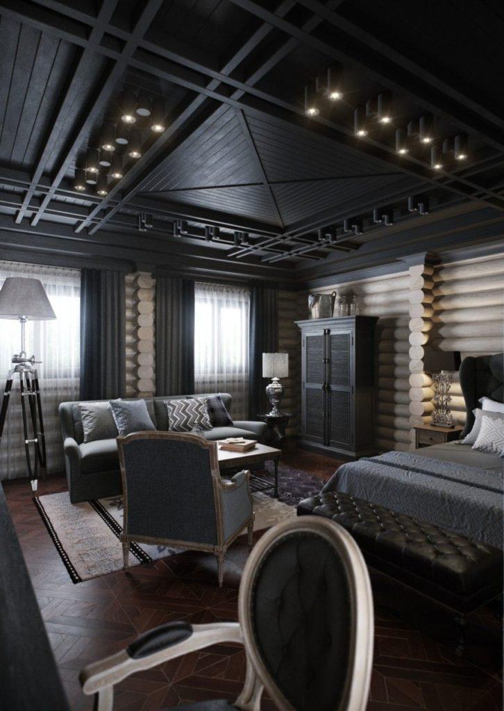 Si te gustan los techos tensados, un diseño en colores oscuros sería una buena opción.