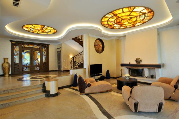 Su vida útil es más larga que la de los encalados, y se ven más atractivos. Es muy agradable que se puedan instalar techos tan hermosos y sin pretensiones durante varias horas, con sus propias manos o con la ayuda de profesionales, en el pasillo, la sala de estar, la guardería, el dormitorio, la cocina e incluso el pasillo. Además, será posible instalar zócalos de techo en relieve, y resultará fabulosamente hermoso, como en los exquisitos palacios de los siglos anteriores.