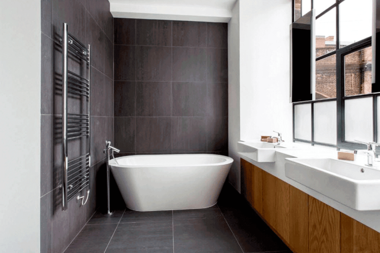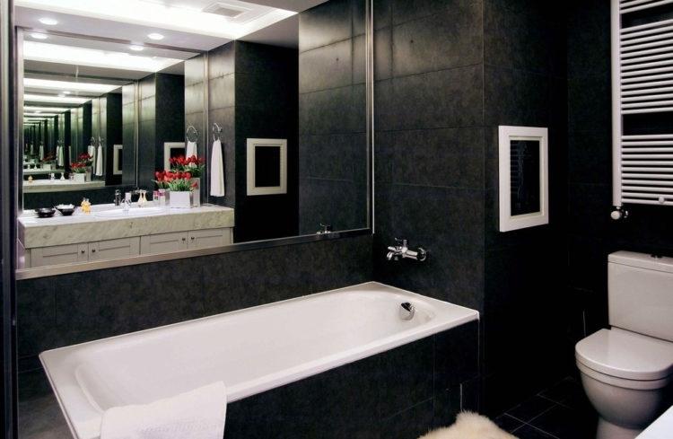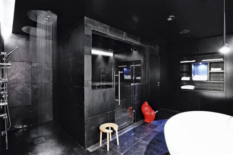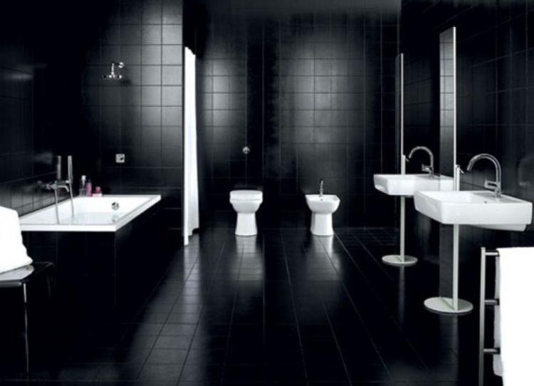 El diseño de baños en tonos negros es una decisión audaz, ya que estos azulejos se ensucian muy fácilmente y requieren un mantenimiento regular.