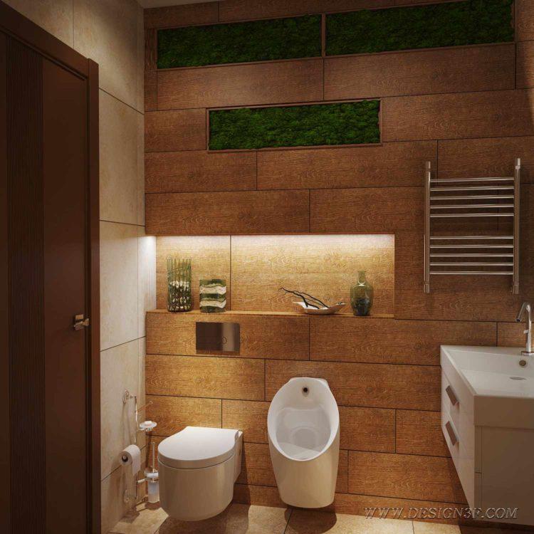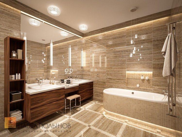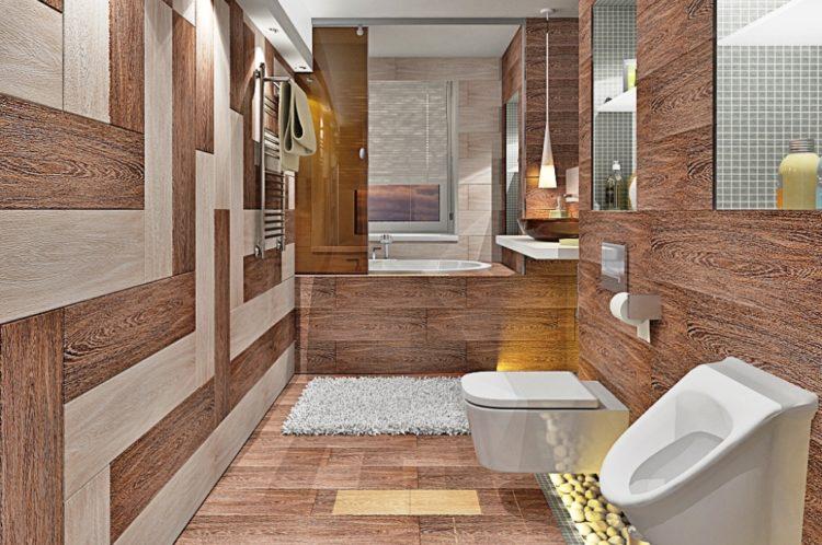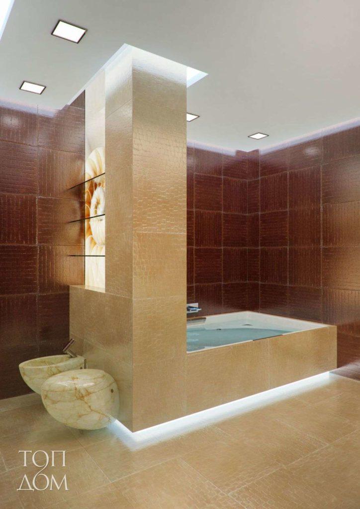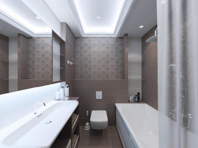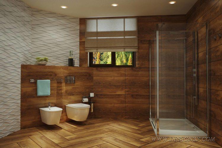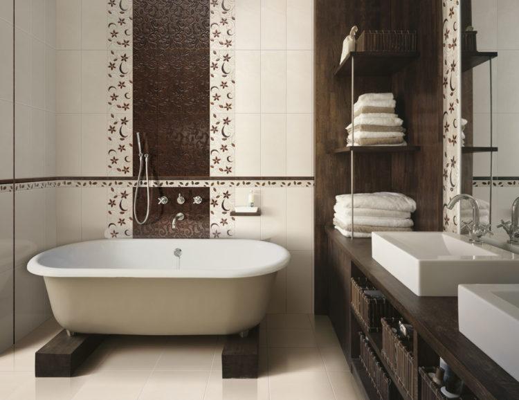 El tinte marrón en el baño no es tan popular, pero combina bien con el blanco y el beige. La foto de diseño de baños en marrón se puede ver a continuación.