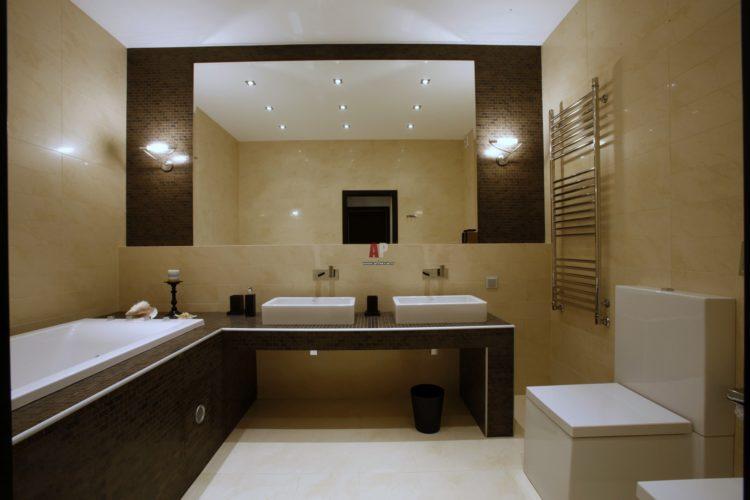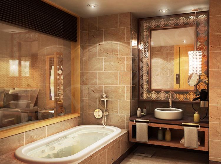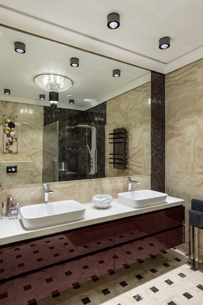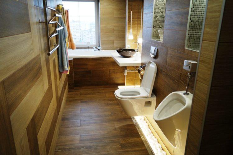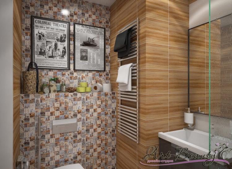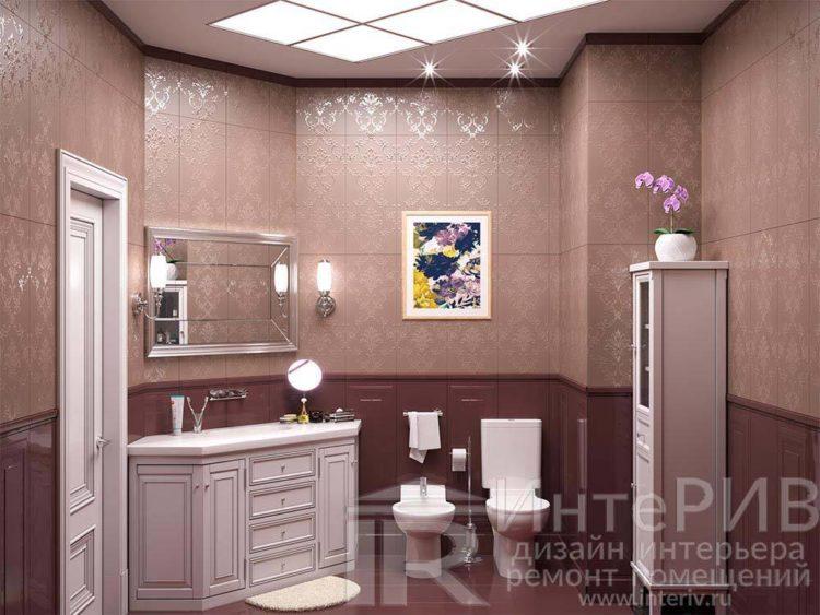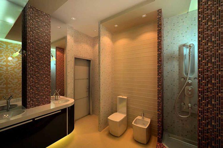 El tinte marrón en el baño no es tan popular, pero combina bien con el blanco y el beige. La foto de diseño de baños en marrón se puede ver a continuación.