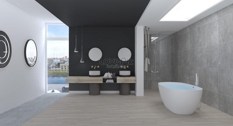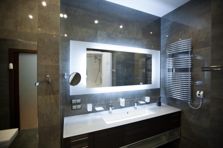 El baño, la foto en la que se presenta en colores oscuros, reducirá significativamente la habitación, pero el baño se verá muy elegante.