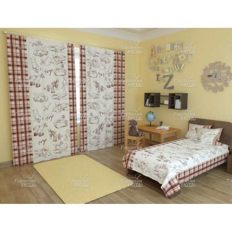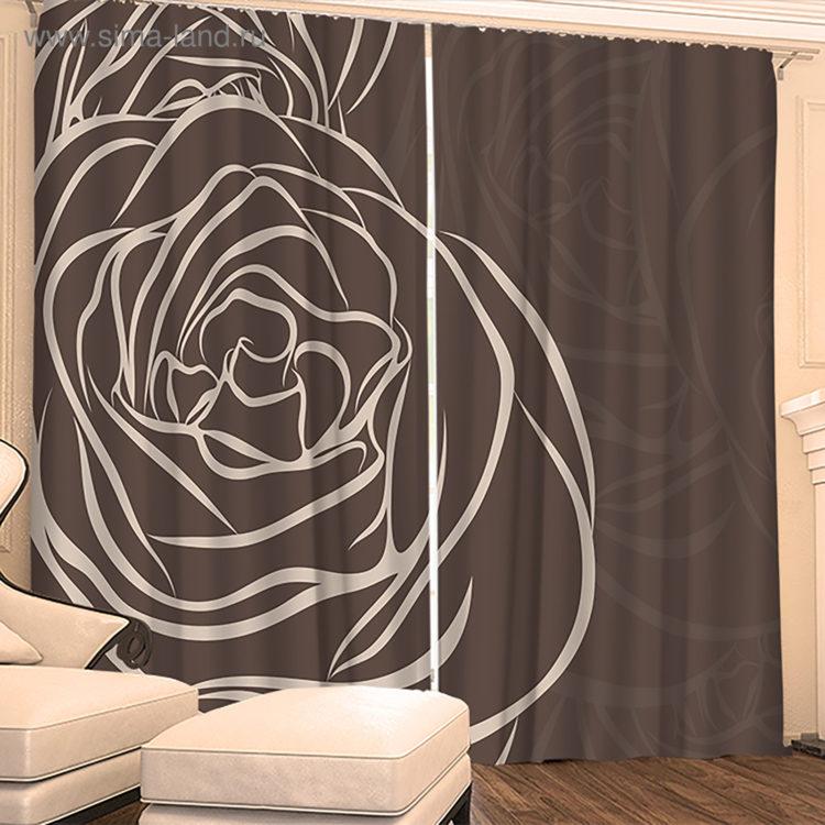 Las cortinas fotográficas en el dormitorio se pueden hacer en relajantes tonos marrones.