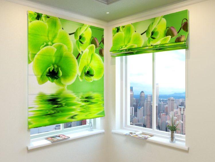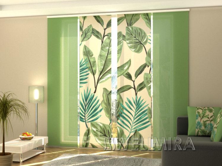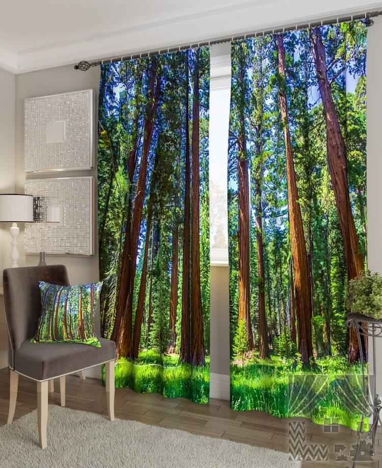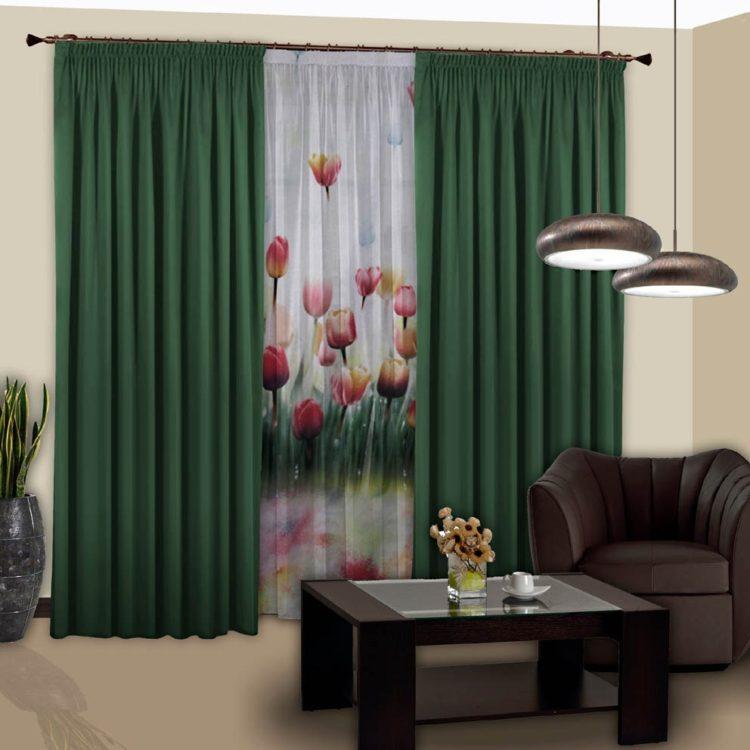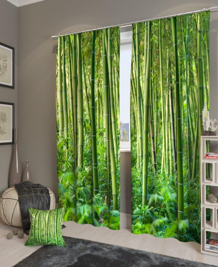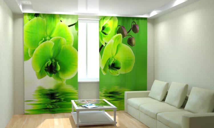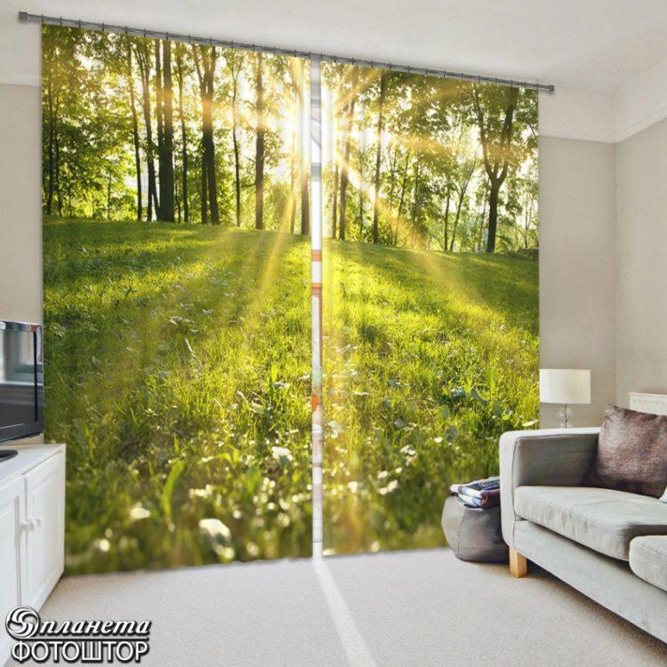 Elija cortinas verdes, las imágenes de la naturaleza le darán a la habitación la vivacidad deseada.