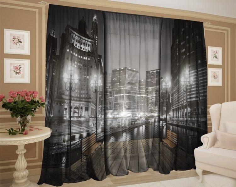 Como puede ver, la foto en las cortinas es una solución muy interesante y creativa para mejoras en el hogar. ¡Puedes elegir solo un millón de fotos! Si le gusta la modernidad y el progreso tecnológico, cuelgue cortinas con la ciudad; las columnas antiguas o los monumentos de arte pueden verse espectaculares en un interior de estilo clásico.