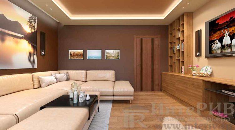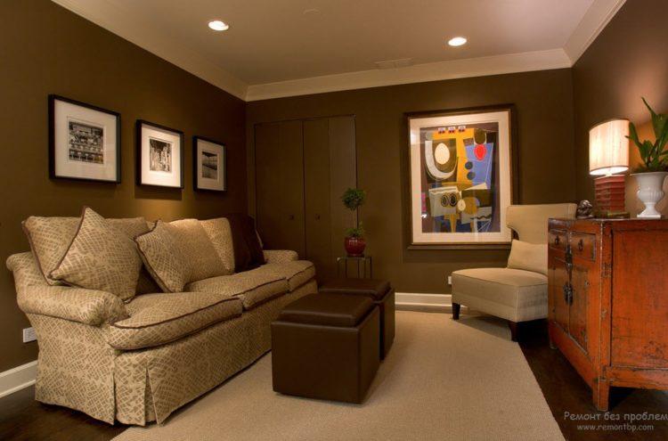 El diseño de la sala de estar (la foto se puede encontrar a continuación) a menudo se realiza en tonos marrones. La combinación de color marrón lechoso se verá bien con un tono café.
