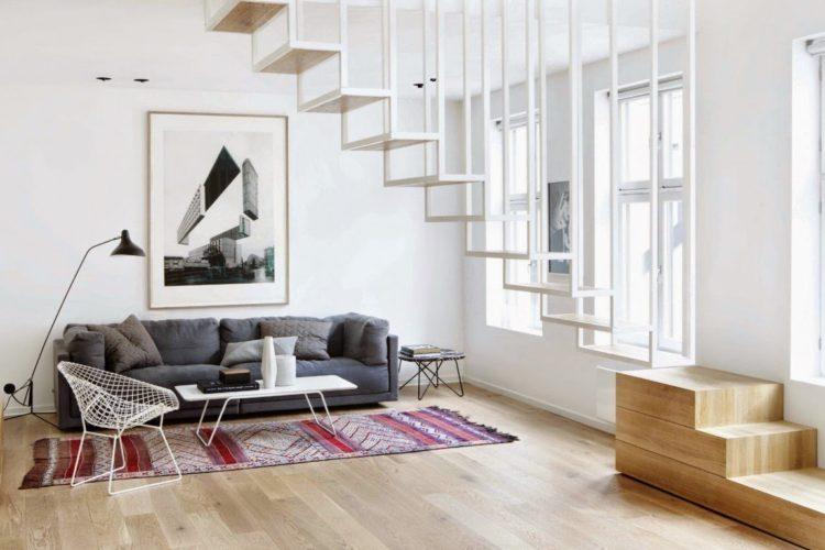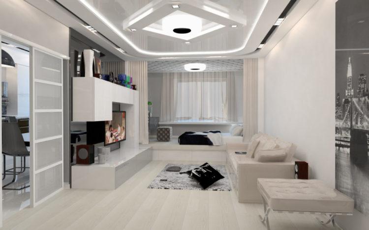 Reflexionando sobre el interior de la sala de estar en el estilo loft, el blanco es la elección de los amantes del interior original. El color blanco le da un valor adicional.En una sala de este tipo es agradable pasar tiempo, las paredes claras se relajan y pacifican. El color blanco está en perfecta armonía con cualquier otro, centrándose en los detalles necesarios. Ideas de fotos de la sala de estilo loft en tonos blancos:
