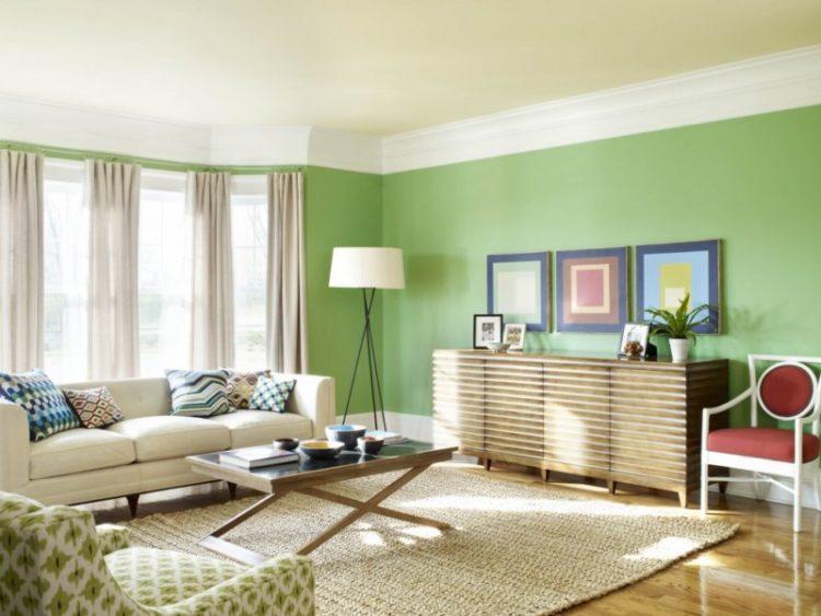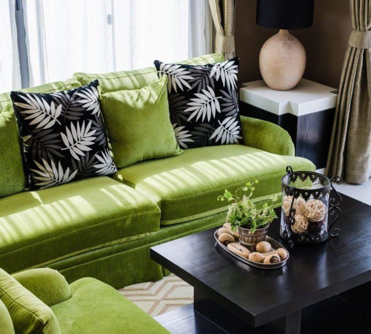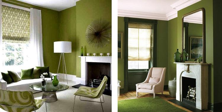 Todos los tonos de verde oscurecen la habitación, pero para salas de estar tipo loft gratuitas esto no es un problema. Ventanas panorámicas, grandes lámparas de techo, lámparas individuales presentan favorablemente verde oliva. Al mismo tiempo, los muebles de la sala en estilo loft, así como las paredes y los techos, deben dejarse a la luz. Para un loft, el hormigón gris claro y el yeso pálido son adecuados.