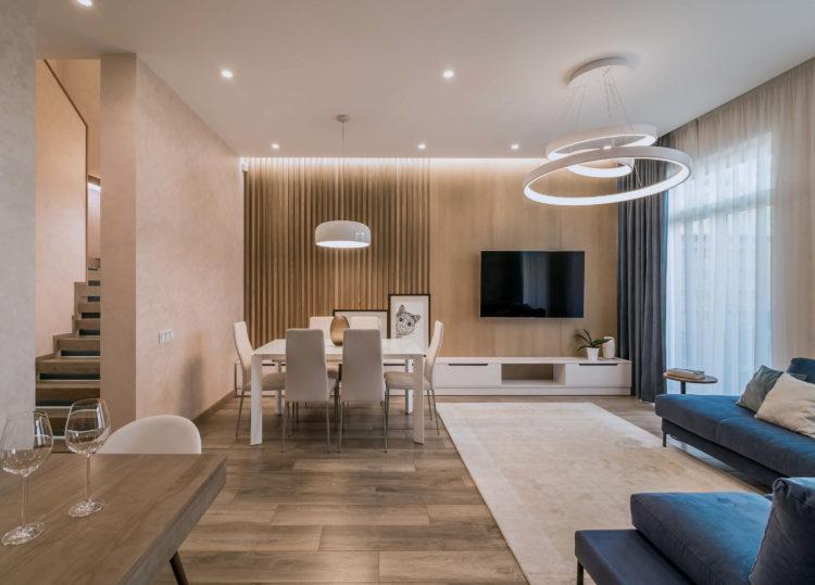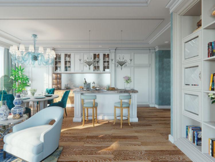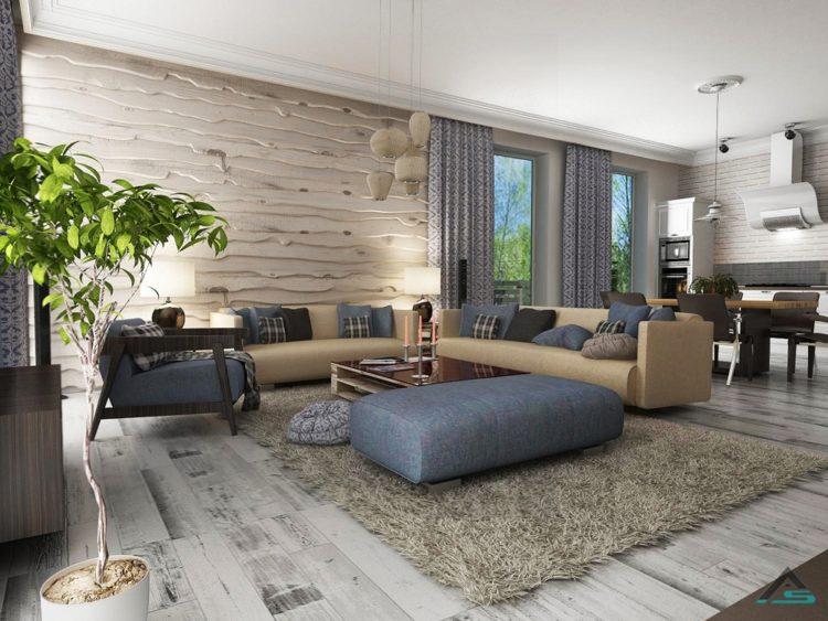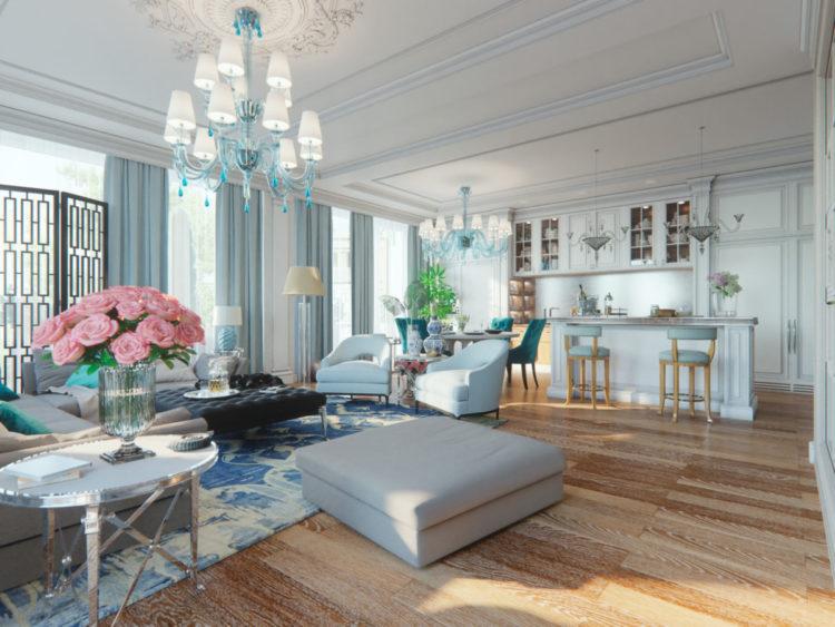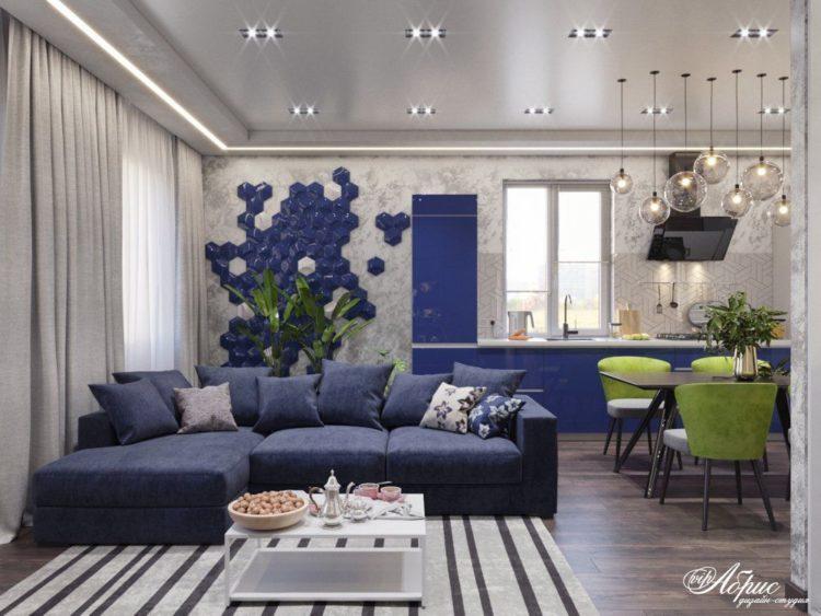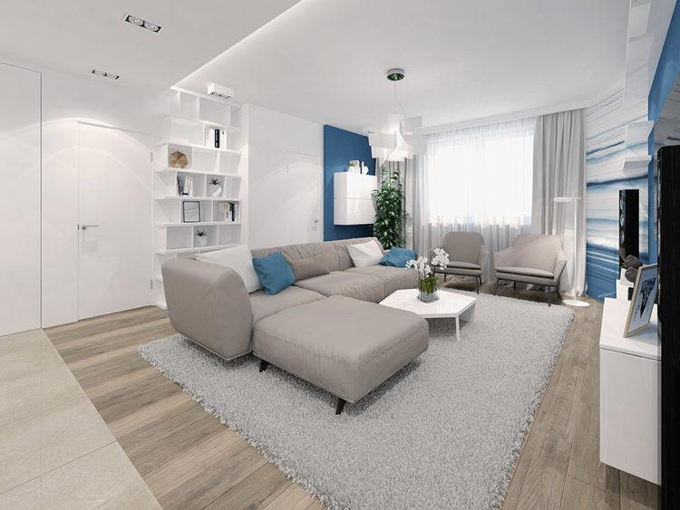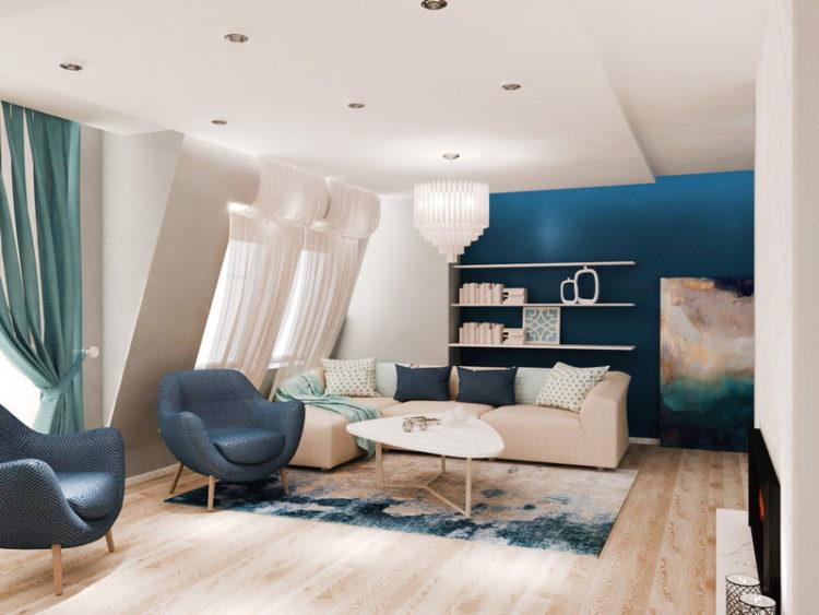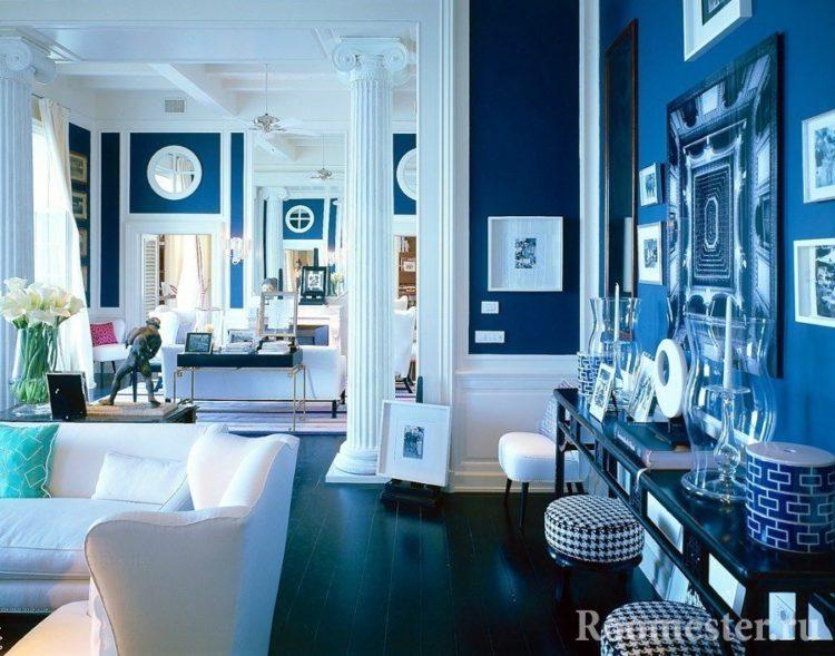 Mucha gente piensa que el azul es un color frío. Y realmente lo es. Pero si lo combina de manera competente con otros tonos, puede diseñar un interior elegante y cómodo, así como el interior más bello de la casa, que, además, nunca se aburrirá. Hermoso diseño de casas se presenta a continuación en la foto.