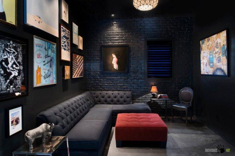 Los tonos oscuros se verán geniales en la casa de un esteta. El propósito puramente práctico del interior oscuro: oculta todos los golpes en las paredes y otros elementos de la habitación.
