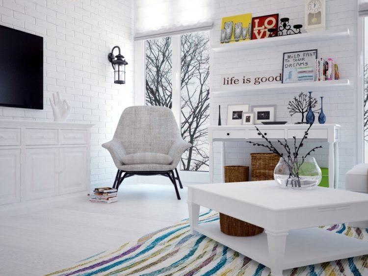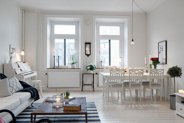 El interior moderno en blanco expande visualmente el espacio, refleja los rayos de luz, aumentando así la iluminación de las habitaciones.