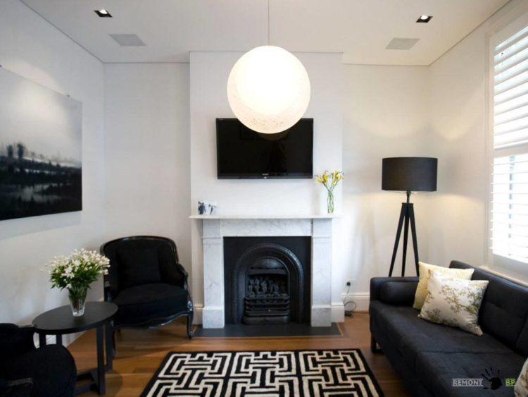 El interior del apartamento con un techo oscuro hace que parezca que está colgando, aplastando, haciendo que los techos sean más bajos.