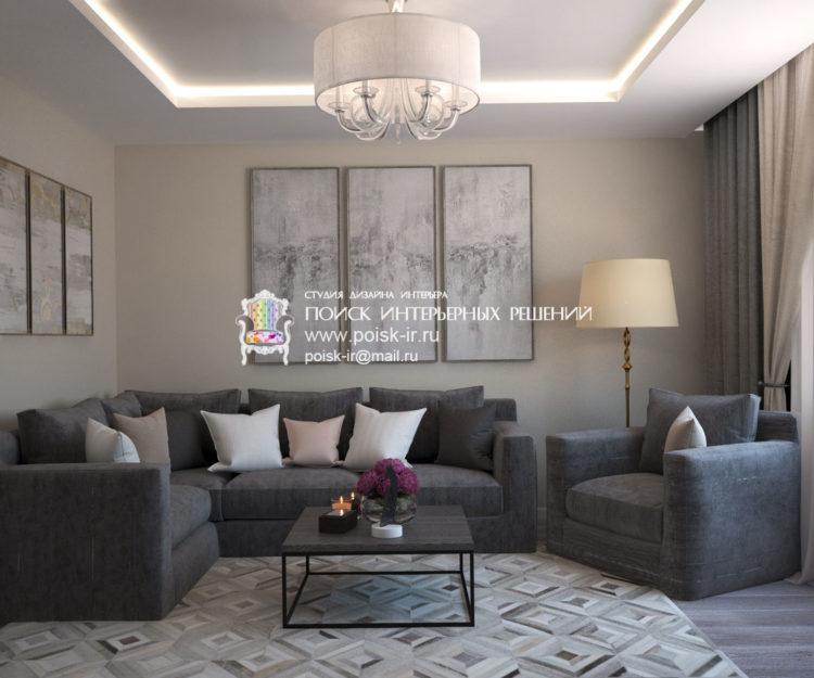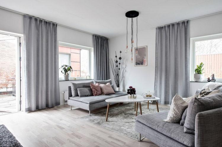 Un maravilloso telón de fondo para la costosa decoración del hogar. Gray es tranquilo y neutral, pero individualmente un poco aburrido, por lo que si lo incluye en el diseño de los apartamentos, las fotos se proporcionan reales, entonces no lo haga dominante.