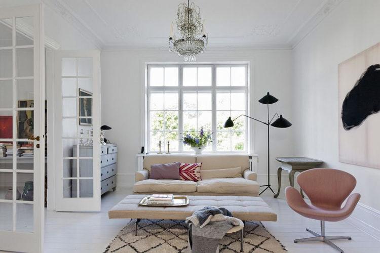 Para crear interiores de apartamentos en un estilo moderno (vea la foto a continuación), use colores claros. Con ellos, será bastante fácil cambiar el estilo y el estado de ánimo de la habitación.