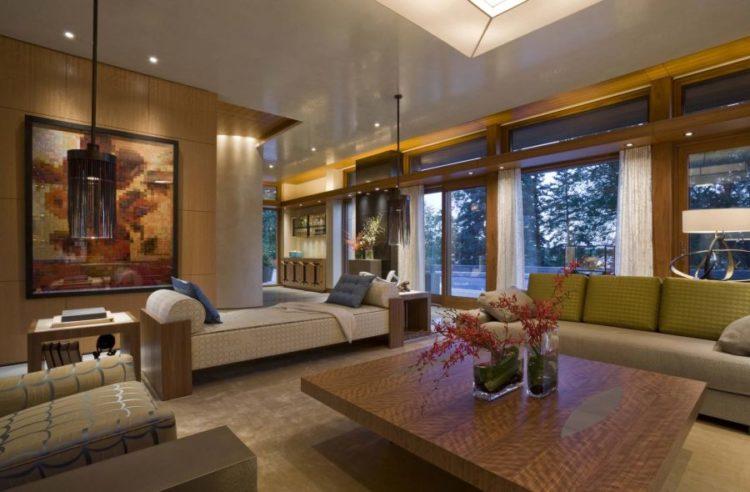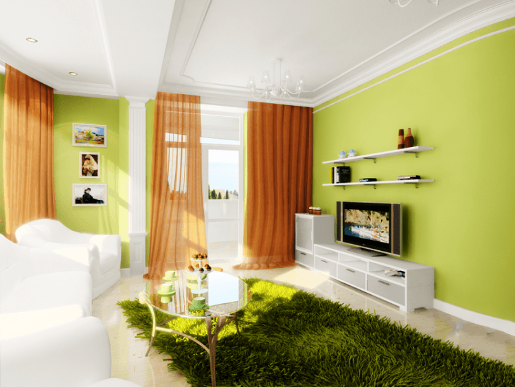 En un interior neutro, pueden estar presentes acentos brillantes, por ejemplo, cortinas rojas, un sofá y sillones, cuadros, almohadas, etc.
