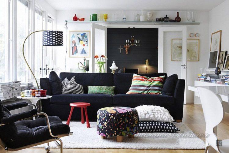 Solo con muy buena iluminación se recomienda utilizar el negro como uno de los colores principales. De lo contrario, corre el riesgo de obtener un diseño de habitación muy sombrío.