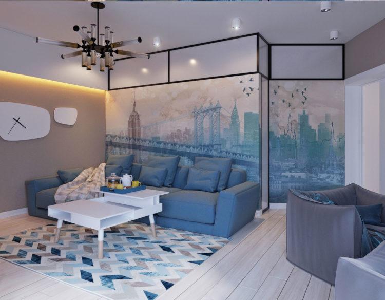 El diseño azul del apartamento (las fotos se adjuntan a continuación) atraerá a diferentes personas, dependiendo de los tonos. Si combinas azul con blanco, será muy elegante.