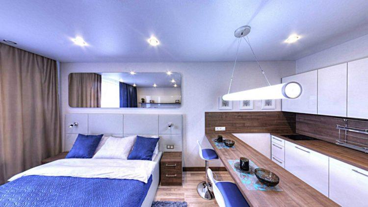 El interior del estudio es elegante, moderno y muy práctico. ¡Encontrarás la foto del apartamento tipo estudio y cómo se ve el apartamento tipo estudio (diseño e interior) a continuación!