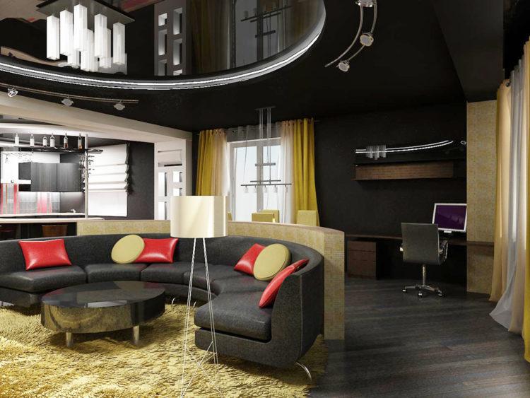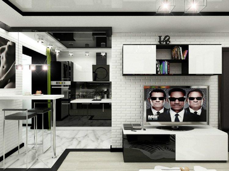 Jugando con combinaciones de colores, puede crear hermosos interiores de apartamentos: las fotos demuestran claramente una combinación estricta y sofisticada de negro con tonos contrastantes.