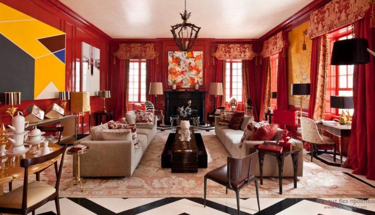 El rojo es imposible de no notar en el interior, incluso si está presente solo como parte. Las fotos de los apartamentos decorados en tonos rojos también le dirán cómo no sobrecargar el diseño con este color.