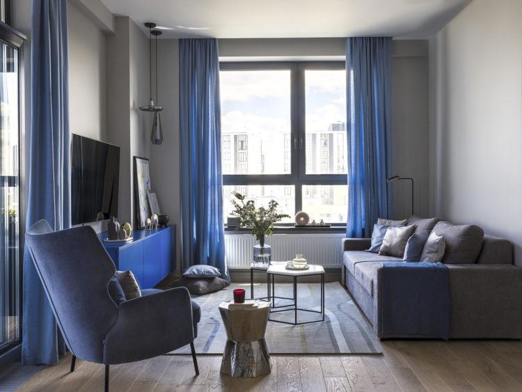 El color azul se puede introducir muy bien en el diseño de los apartamentos (a continuación se muestran fotos de las opciones más exitosas).