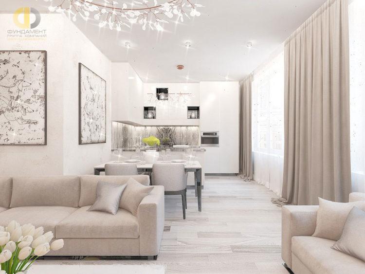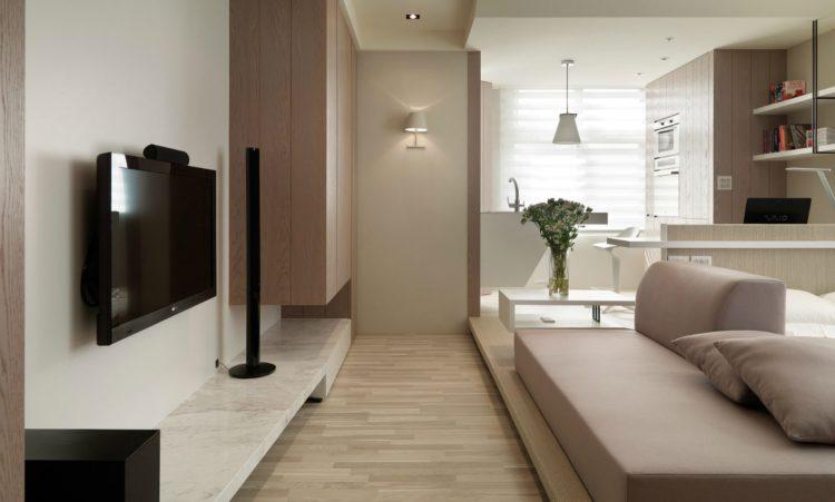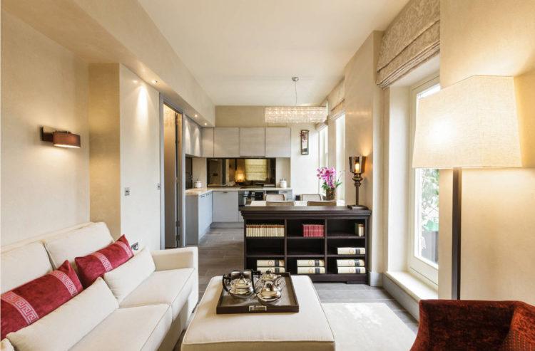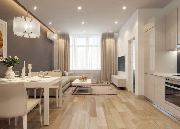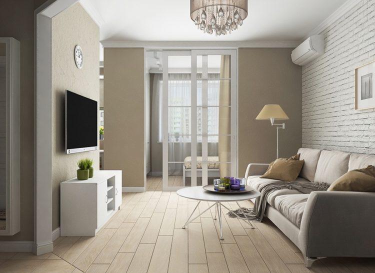 El interior beige para un apartamento de una habitación es una de las opciones de reparación clásicas en odnushka.