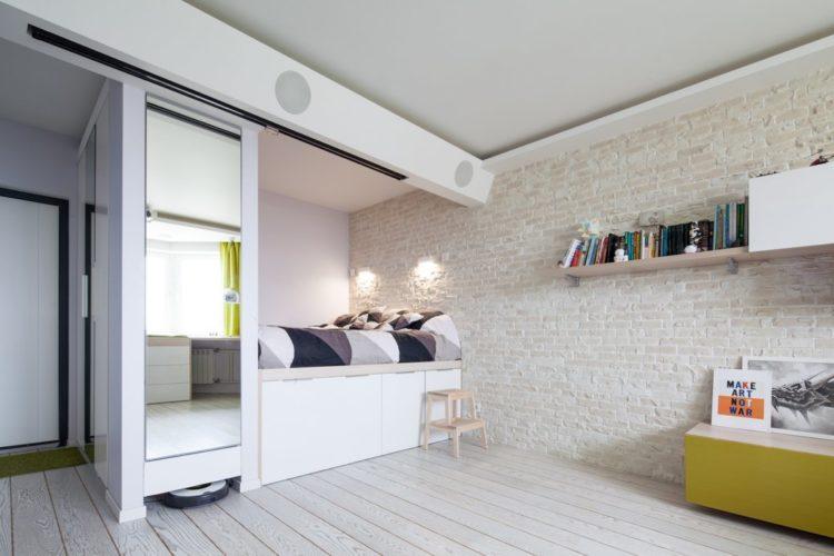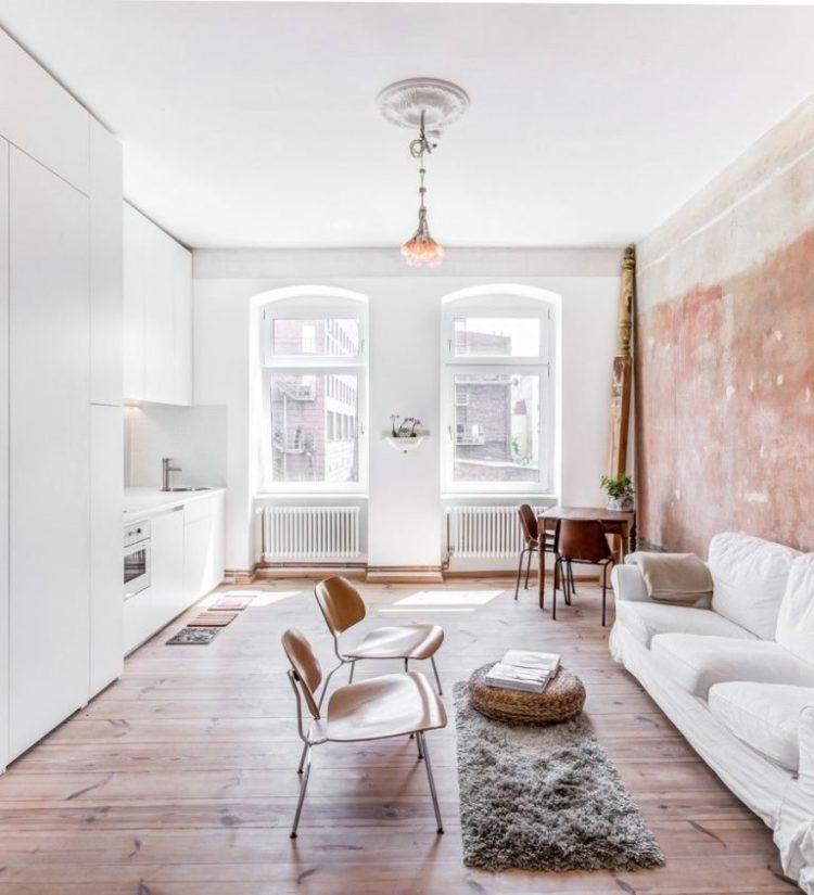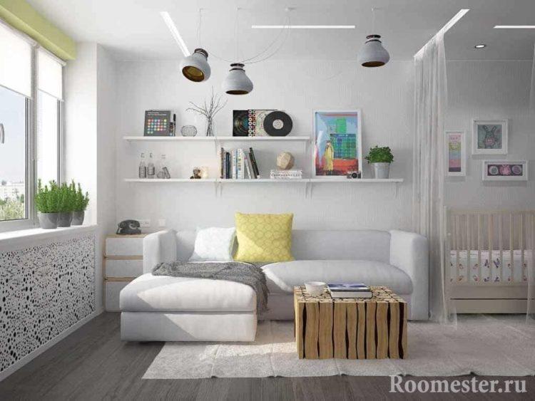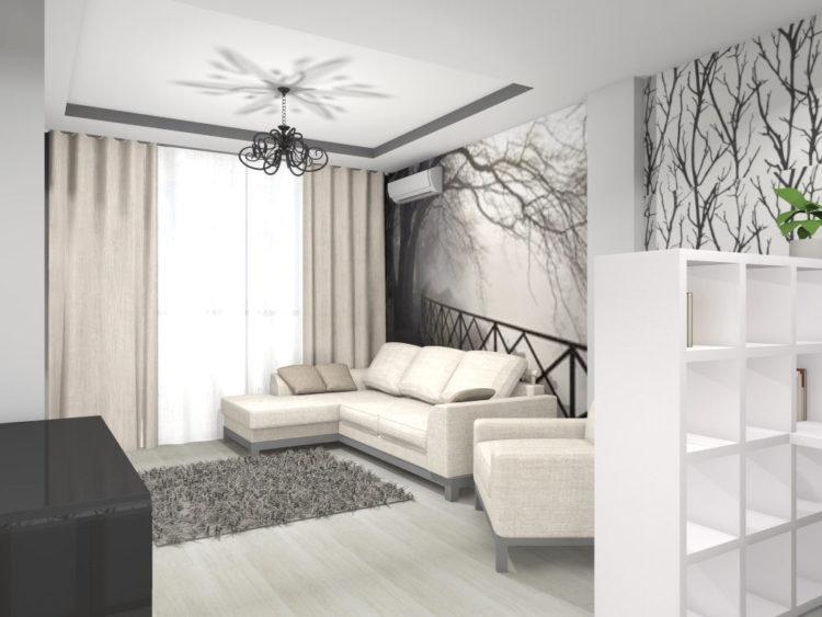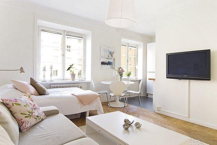 Los papeles pintados blancos en un apartamento de una habitación no se ven menos apropiados que en una gran casa privada. Gracias a este diseño, la habitación parece más grande y espaciosa.