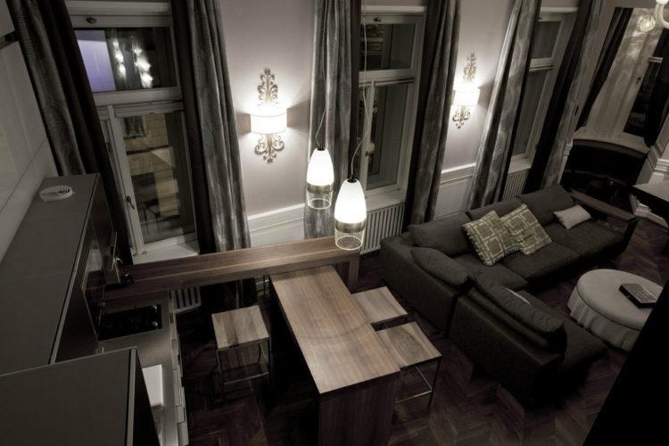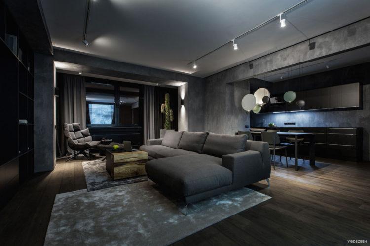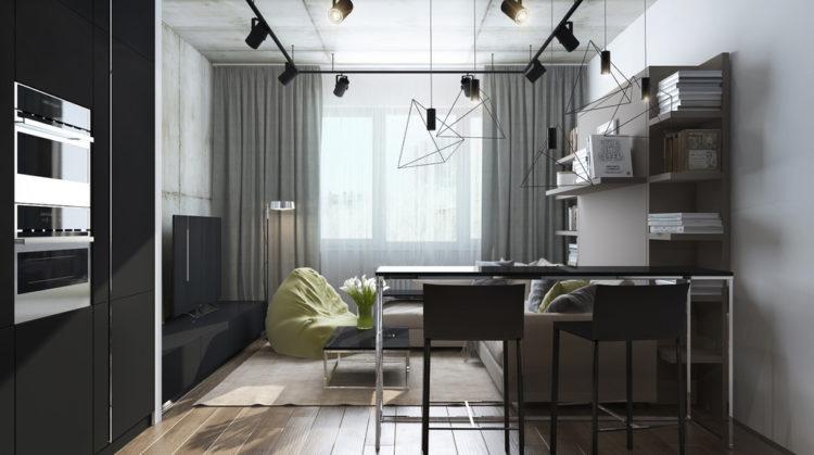 El diseño oscuro de un apartamento de una habitación puede no parecer la mejor solución, aunque jugando con el contraste puede obtener un interior bastante interesante.