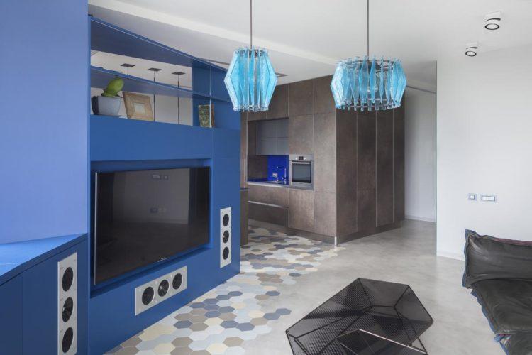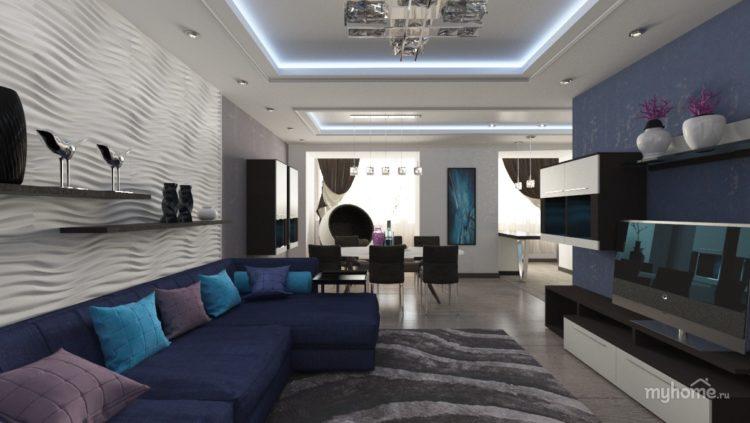 El diseño de una habitación en un estudio en tonos azules o azules también es una opción de diseño bastante popular. Una habitación con papel tapiz o decoración azul celeste se verá perfecta.